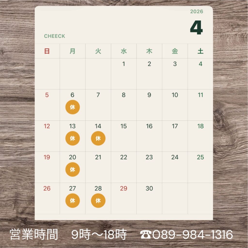 2026年4月営業日カレンダー